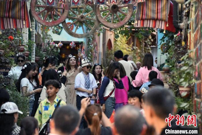 雙節(jié)期間,喀什作為新疆重要旅游目的地之一,迎來旅游高峰。10月1日,中新網(wǎng)記者來到喀什古城景區(qū),看到熙熙攘攘的游客們漫步在縱橫交錯的巷道里,時不時駐足停留。10時,在古城東門,觀看開城儀式的游客紛紛拿出手機打卡??κ补懦蔷皡^(qū)管委會對外宣傳科科長阿地力江·阿不都卡德爾說,今年喀什旅游非?;馃幔芏嘤慰湍矫鴣?,品嘗當(dāng)?shù)孛朗常惺苊褡屣L(fēng)情,帶動了喀什古城景區(qū)的整體經(jīng)濟發(fā)展。