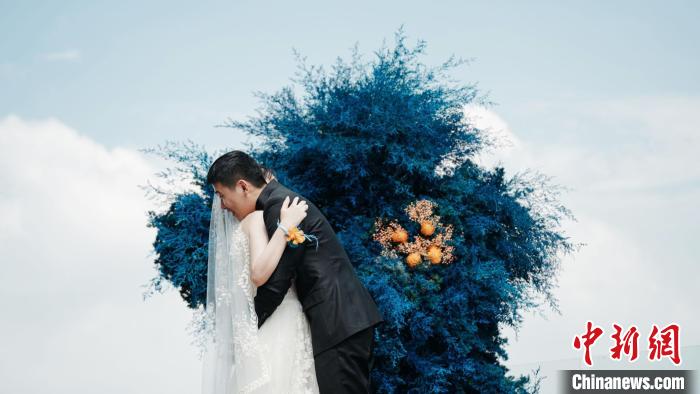 在天藍(lán)色的主色調(diào)中,同一片天空下兩朵自由自在的“云朵”相遇了,共同飄向遠(yuǎn)方……這是婚禮策劃師趙沖為一對(duì)新人打造的夢(mèng)幻婚禮方案。