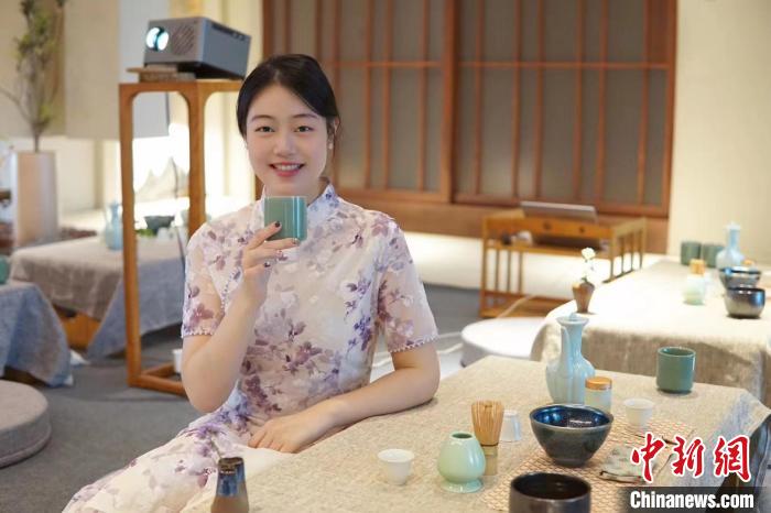 9月18日,臺(tái)灣青年闕郁璇體驗(yàn)傳統(tǒng)茶道?!∈茉L(fǎng)者供圖