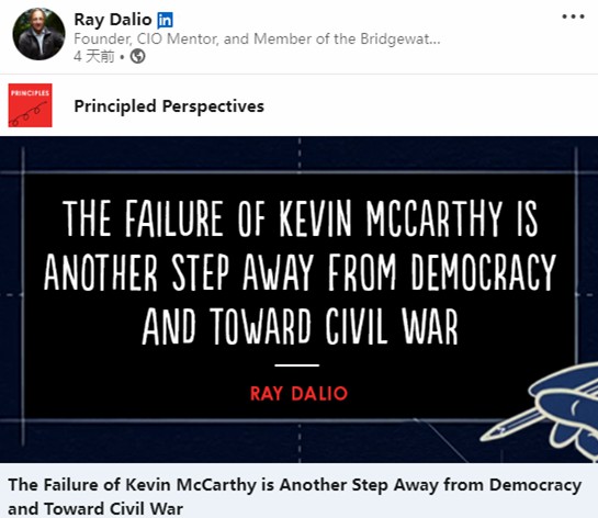 雷·達(dá)里奧(RayDalio)領(lǐng)英平臺(tái)截圖
