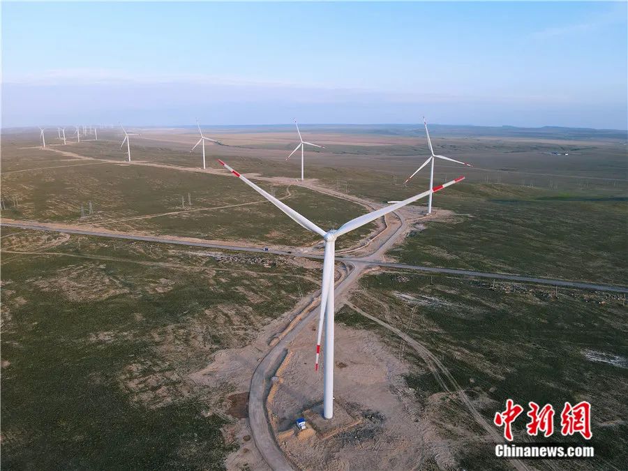 位于哈薩克斯坦南部地區(qū)的札納塔斯風電項目于2021年并網(wǎng)發(fā)電,為當?shù)靥峁┝饲鍧嵞茉幢U?。國家電?供圖