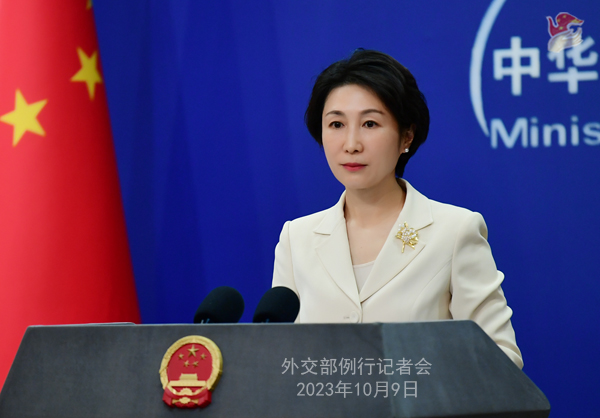 中新網(wǎng)北京10月9日電 (李京澤 謝雁冰)中國外交部發(fā)言人毛寧9日主持例行記者會(huì)。