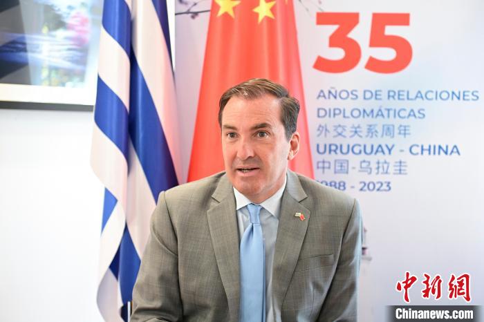 近日,烏拉圭駐華大使費爾南多·盧格里斯在北京接受中新社專訪?!≈行律缬浾?田雨昊 攝