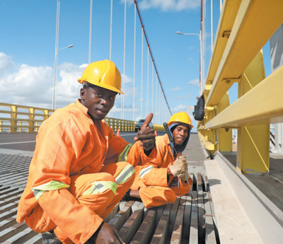 據(jù)介紹,馬普托大橋項目在建設(shè)過程中踐行屬地化經(jīng)營理念,建設(shè)最高峰期雇傭當(dāng)?shù)貑T工超過3000人,焊工、車工、鋼筋工、機(jī)械操作手等一大批專業(yè)技術(shù)人員通過大橋項目提升了職業(yè)技能?!霸诖髽蝽椖可蠈W(xué)到的一技之長幫我找到了新的工作?!蹦1瓤饲嗄攴茽柕缕湛ㄕ劶霸隈R普托大橋項目工作的收獲,臉上洋溢著幸福的笑容。