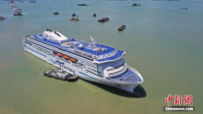 2021年7月15日,中國(guó)為阿爾及利亞建造的首艘豪華客滾船啟航。中新社發(fā) 符致冠 攝