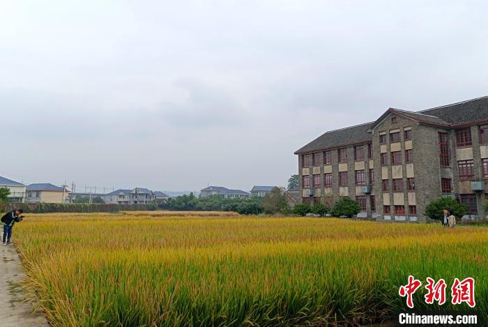 10月13日,安江農(nóng)校紀(jì)念園內(nèi),袁隆平曾發(fā)現(xiàn)水稻“天然雄性不育株”的試驗田里,金黃的稻穗隨風(fēng)搖曳。這里如今仍是科研人員開展雜交水稻研究的“陣地”。中新社記者 鄧霞 攝