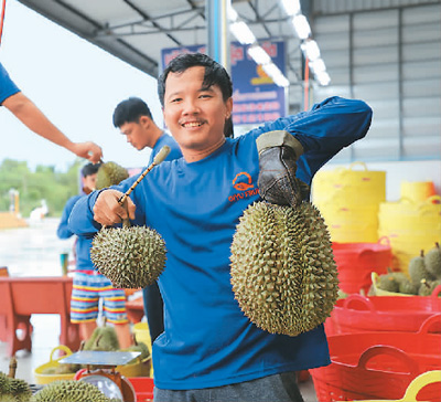 “榴蓮種植面積每年都在增長(zhǎng),一些橡膠、棕櫚園紛紛改種榴蓮,因?yàn)橹袊?guó)市場(chǎng)巨大,采購(gòu)量逐年遞增。以前每公斤榴蓮只能賣(mài)三四十泰銖,賣(mài)到80泰銖果農(nóng)就高興得不得了,可這兩年漲到了一百三四十泰銖,中國(guó)節(jié)日期間甚至漲到180泰銖?!碧﹪?guó)南部榴蓮協(xié)會(huì)會(huì)長(zhǎng)西立告訴記者,“以前果農(nóng)的日子不好過(guò),很多年輕人不愿做果園生意,但現(xiàn)在不少果農(nóng)后代在大學(xué)畢業(yè)后都選擇返回家鄉(xiāng),用知識(shí)發(fā)展果園?!?/p>