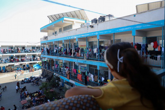 10月15日,在加沙地帶南部城市汗尤尼斯,流離失所者暫時居住在當?shù)匾凰鶎W(xué)校里。新華社發(fā)(里澤克·阿卜杜勒賈瓦德攝)