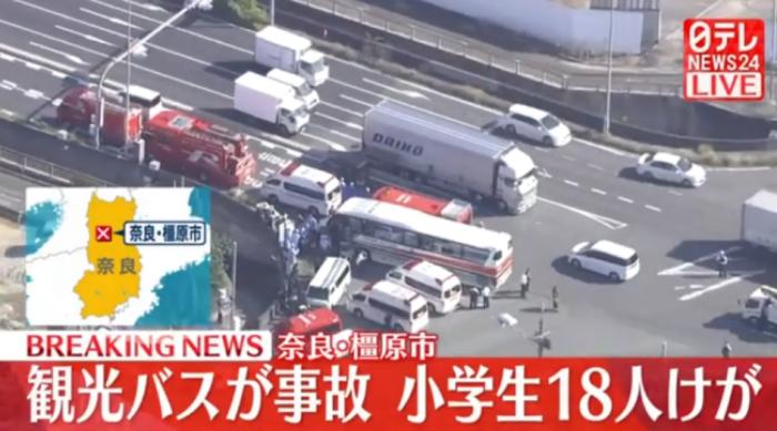 據(jù)報(bào)道,事發(fā)時(shí)車(chē)內(nèi)共有34名小學(xué)生,另外還有3名教師,一行人原本是計(jì)劃前往奈良公園參加遠(yuǎn)足活動(dòng),但在橿原市一個(gè)路口發(fā)生車(chē)禍。