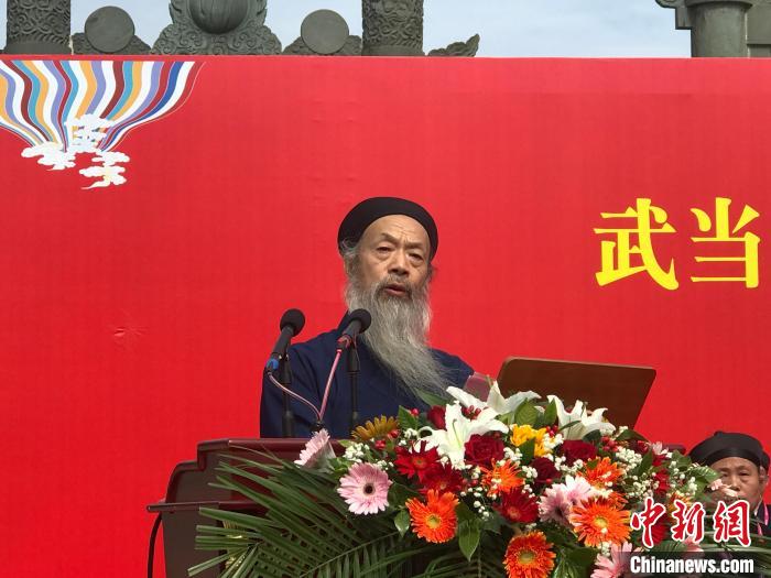 10月21日,武當(dāng)山紫霄宮方丈升座暨癸卯(2023)年全真派道士傳戒活動(dòng)典禮在湖北省丹江口市靜樂宮舉行。中國道教協(xié)會會長李光富道長升座武當(dāng)山紫霄宮方丈。圖為李光富致答謝辭。中新網(wǎng)記者 陳建新 攝