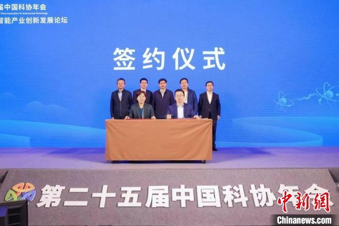 第二十五屆中國科協(xié)年會(huì)通用人工智能產(chǎn)業(yè)創(chuàng)新發(fā)展論壇上,中國自動(dòng)化學(xué)會(huì)與科大訊飛簽署戰(zhàn)略合作協(xié)議。中國科協(xié) 供圖