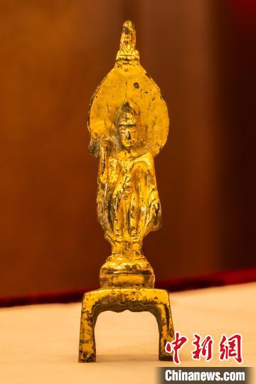 中國駐澳大利亞大使館舉行儀式,接收澳方向我國返還共4件流失文物藝術品與1件古生物化石。圖為隋晚期至唐銅鎏金佛立像。 國家文物局供圖