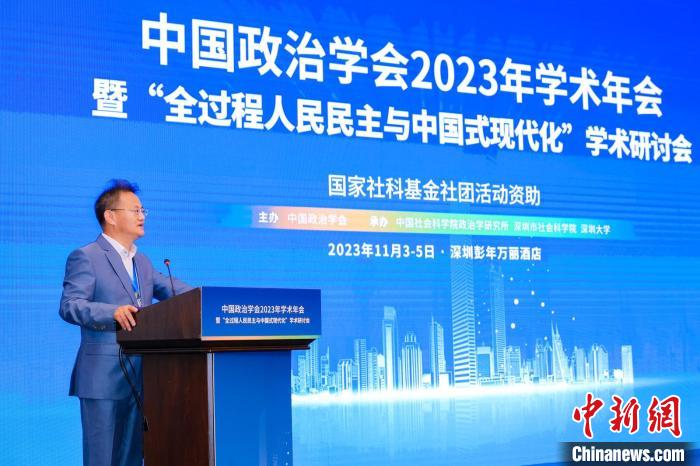 中新網(wǎng)深圳11月5日電 由中國(guó)政治學(xué)會(huì)主辦的2023年學(xué)術(shù)年會(huì)暨“全過(guò)程人民民主與中國(guó)式現(xiàn)代化”學(xué)術(shù)研討會(huì)2023年11月4日—5日在深圳舉行,來(lái)自全國(guó)高校系統(tǒng)、黨校系統(tǒng)和科研院所近300位專(zhuān)家學(xué)者參加會(huì)議。本次會(huì)議由中國(guó)社會(huì)科學(xué)院政治學(xué)研究所、深圳市社會(huì)科學(xué)院和深圳大學(xué)共同承辦。這次年會(huì)同時(shí)得到國(guó)家社科基金社團(tuán)活動(dòng)資助。