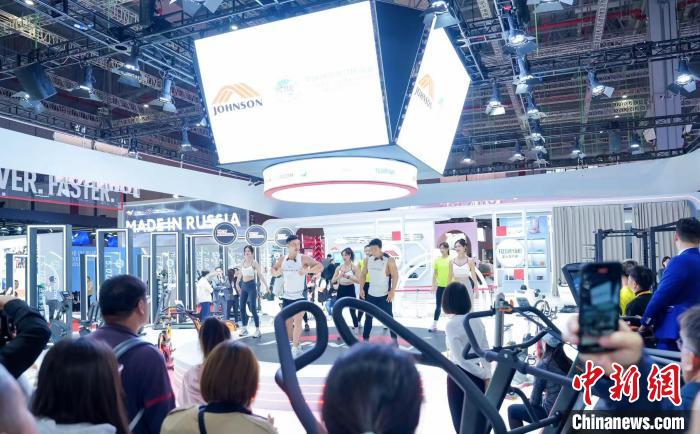11月7日,第六屆進(jìn)博會上,臺資企業(yè)喬山健康科技(上海)有限公司在展臺舉行活動。(喬山集團(tuán)供圖)