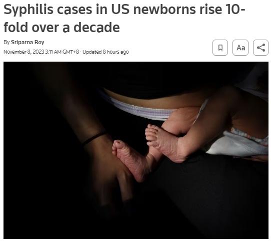 據(jù)報(bào)道,當(dāng)天,美國疾病控制和預(yù)防中心報(bào)告顯示,2012年新生兒梅毒病例僅為330多例2022年這一數(shù)字升至3761例,增長(zhǎng)了10倍多,為30多年來最高值。