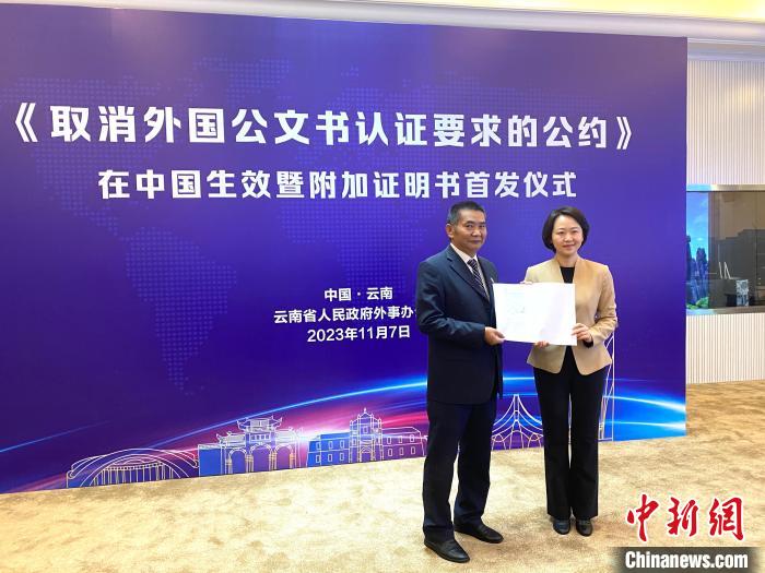 《取消外國(guó)公文書認(rèn)證要求的公約》在中國(guó)生效 云南簽發(fā)首張附加證明書
