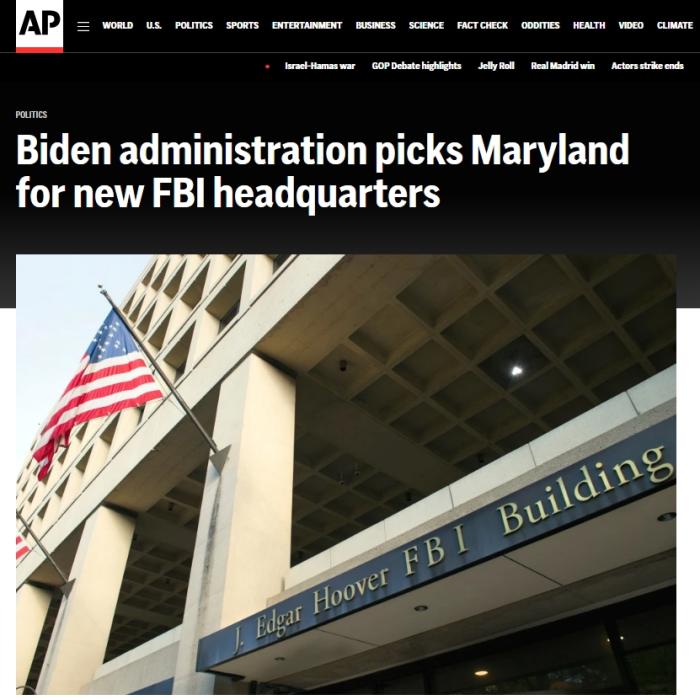 中新網(wǎng)11月9日電 綜合美聯(lián)社、《華盛頓郵報》報道,當?shù)貢r間8日,美國聯(lián)邦總務管理局(GSA)證實,美國政府已選擇在馬里蘭州設立聯(lián)邦調查局(FBI)新總部。
