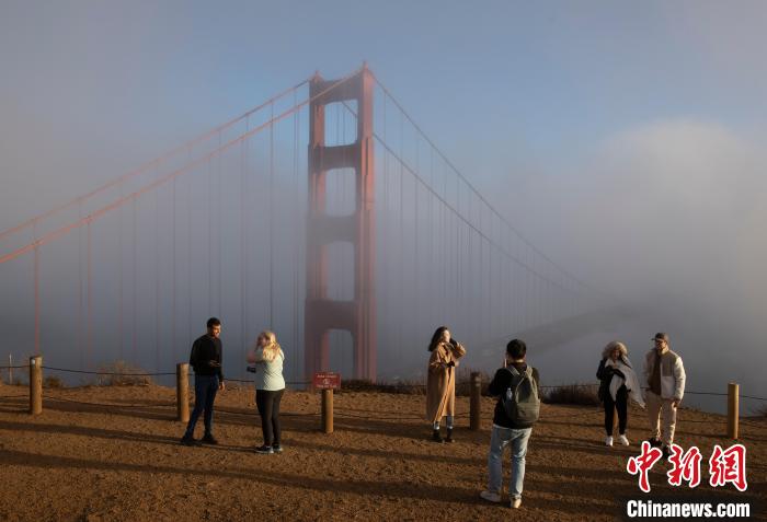 當(dāng)?shù)貢r(shí)間11月4日,游客參觀舊金山金門大橋。 中新社記者 劉關(guān)關(guān) 攝