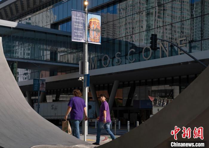 當(dāng)?shù)貢r(shí)間11月7日,民眾從舊金山莫斯康中心附近經(jīng)過?!≈行律缬浾? 劉關(guān)關(guān) 攝