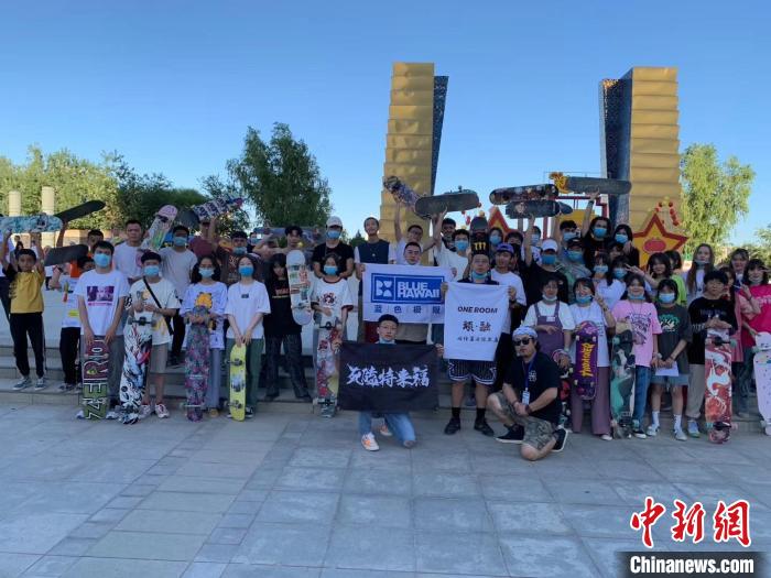 薛承祚(前排右一)和他的小伙伴們參與滑板比賽。(受訪者供圖)