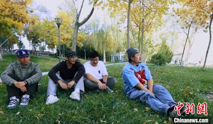 薛承祚(右一)和好友用“疆味兒”說唱贊美家鄉(xiāng)喀什。(受訪者供圖)