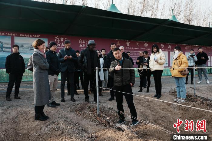駐華使節(jié)、外交官和外國地方駐華機構(gòu)代表在賀蘭神酒莊了解葡萄藤埋土工作。 中新網(wǎng)記者 崔楠 攝
