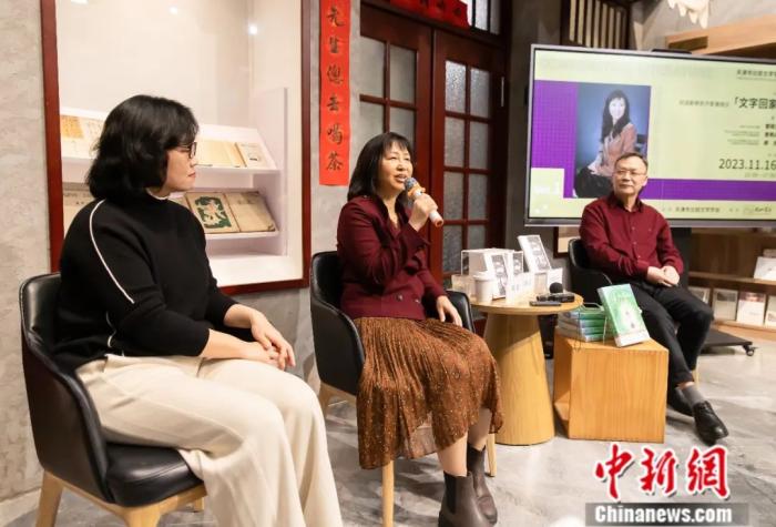曾曉文(中)參加由天津市比較文學(xué)學(xué)會(huì)主辦的“文字回家”主題討論會(huì)。王在御 攝