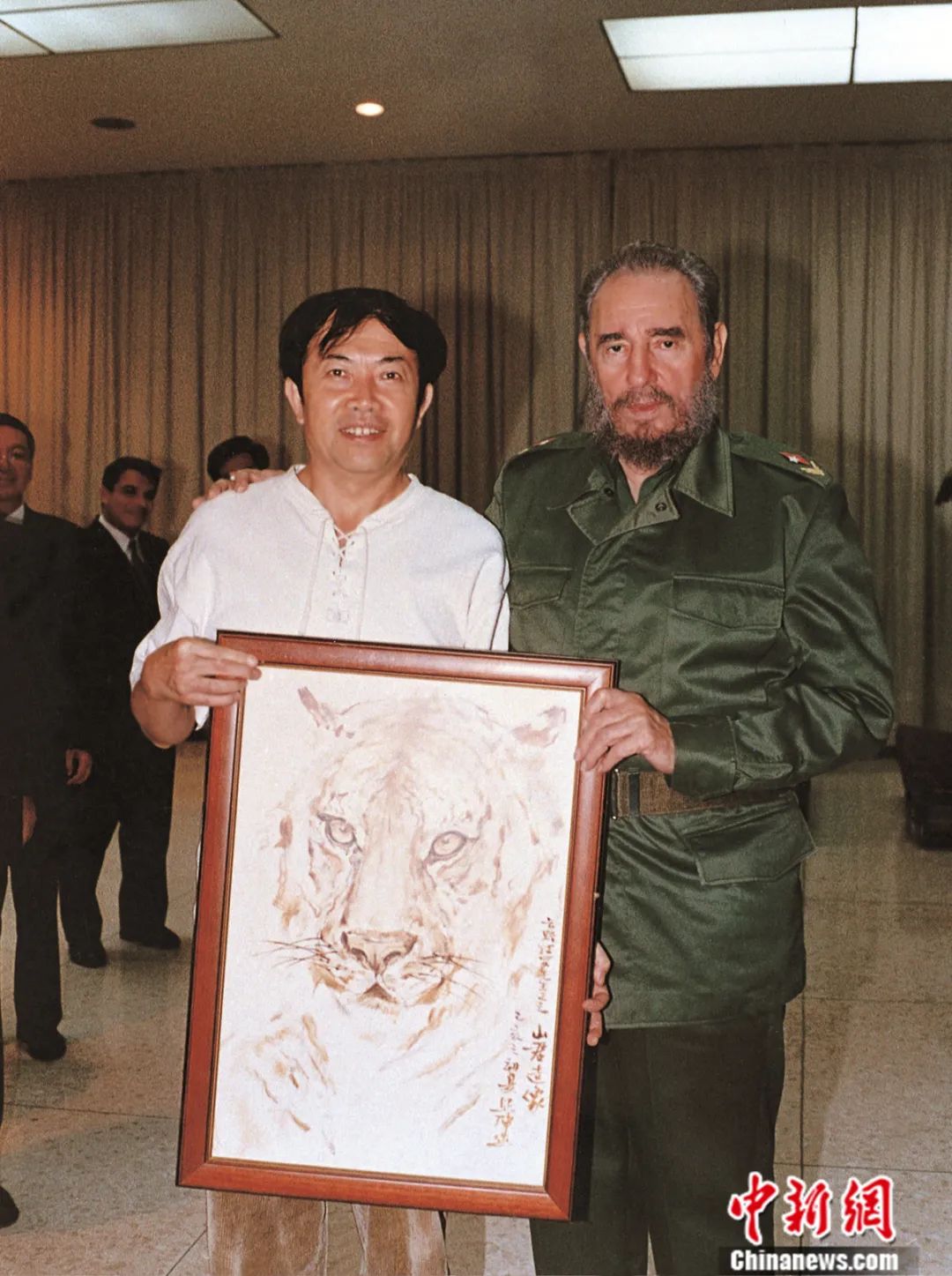 袁熙坤將代表作《山君造像》贈(zèng)與古巴革命領(lǐng)袖菲德?tīng)?卡斯特羅。受訪者供圖