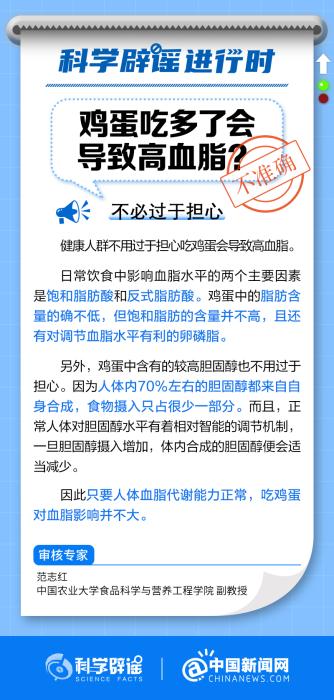 中新網(wǎng)11月27日電 只要人體血脂代謝能力正常,吃雞蛋對(duì)血脂影響并不大。日常飲食中影響血脂水平的兩個(gè)主要因素是飽和脂肪酸和反式脂肪酸。雞蛋中的脂肪含量的確不低,但飽和脂肪的含量并不高,且還有對(duì)調(diào)節(jié)血脂水平有利的卵磷脂。(來(lái)源:@科學(xué)辟謠 @中國(guó)新聞網(wǎng) )