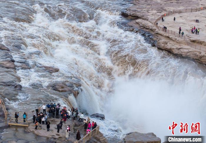 27日,“江山如畫”網(wǎng)上主題宣傳活動(山西)采訪團(tuán)探訪壺口瀑布?! ∥淇〗? 攝