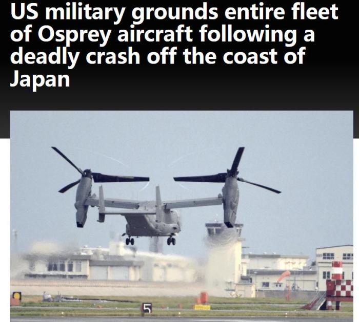 美聯(lián)社指出,此次墜機事件再次引發(fā)了對“魚鷹”飛機安全性的質疑。美國空軍、海軍和海軍陸戰(zhàn)隊采取了非同尋常的措施,停飛了數(shù)百架飛機。