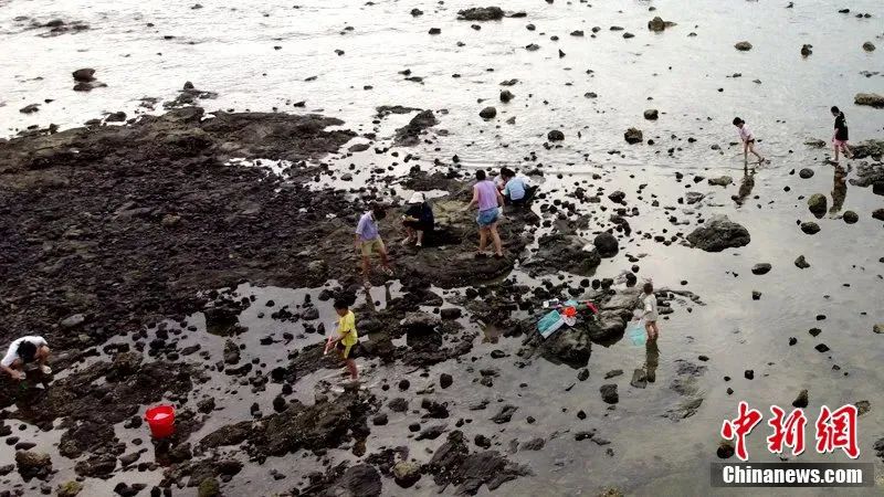 圖為游客在澄邁道倫灣海域體驗“趕海”樂趣。陳英清 攝