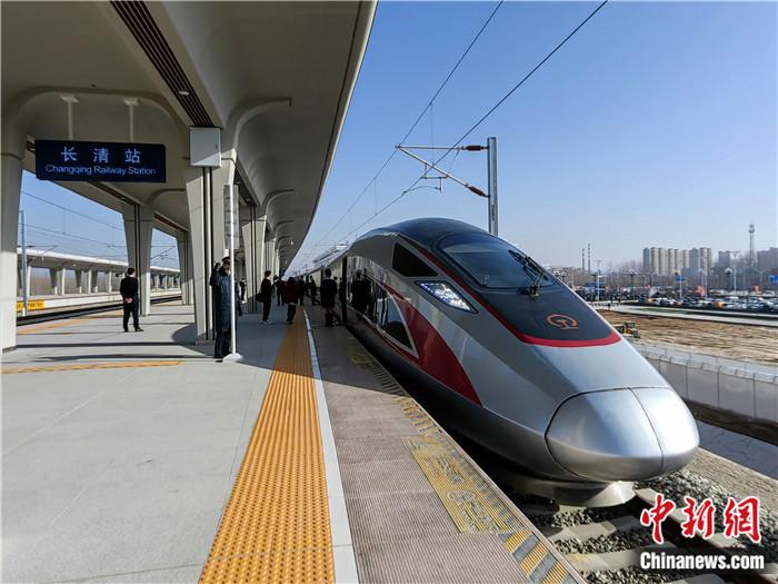 12月8日,濟(jì)鄭高鐵全線通車。圖為在濟(jì)南長(zhǎng)清站始發(fā)前往鄭州的復(fù)興號(hào)列車。沙見龍 攝