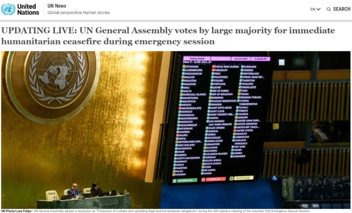 除呼吁?;鹜?,該決議還要求沖突各方立即無條件釋放所有人質(zhì),并“確保人道主義準(zhǔn)入”。同時,決議還重申大會要求所有各方遵守國際法,包括國際人道主義法規(guī)定的義務(wù),“特別是在保護(hù)平民方面”。