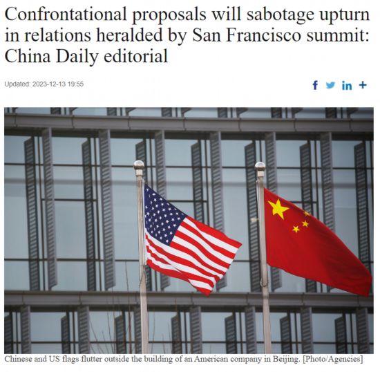 11月,舊金山會晤達成共識,中美雙方應加強溝通,妥善管控分歧,推進對話合作。然而,委員會的提議卻與舊金山會晤共識背道而馳,充滿對抗性。提議或將導致美國國會于明年出現(xiàn)更多反華立法,這無疑將給雙方關系的改善蒙上陰影。