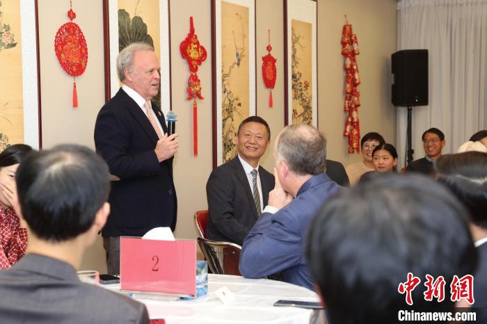 12月16日,加拿大白求恩醫(yī)學發(fā)展協(xié)會會長艾瑞特(站立者)在招待會上發(fā)言。中新社記者 余瑞冬 攝