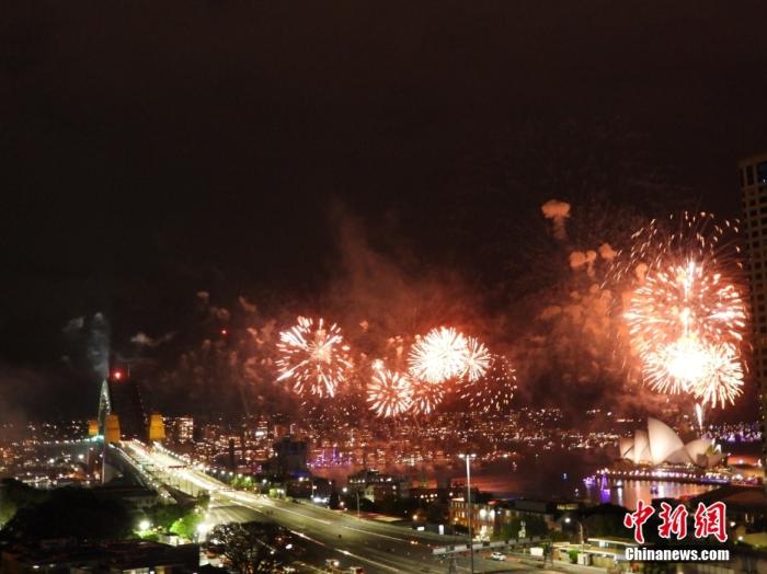 資料圖:當?shù)貢r間2023年12月31日晚上9點和午夜時分,澳大利亞悉尼海港大橋和歌劇院燈火通明,音樂響起,迎來了2024年的到來。
