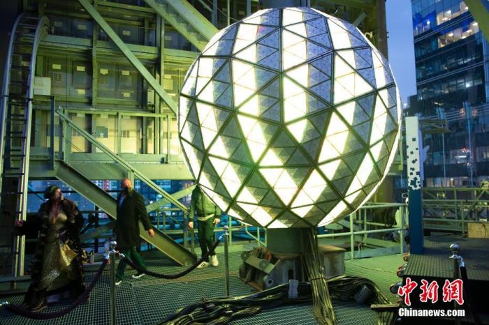 資料圖:當?shù)貢r間2021年12月30日,美國紐約時報廣場跨年夜倒計時水晶球測試亮燈,現(xiàn)場向部分人士開放預(yù)覽。 中新社記者 廖攀 攝
