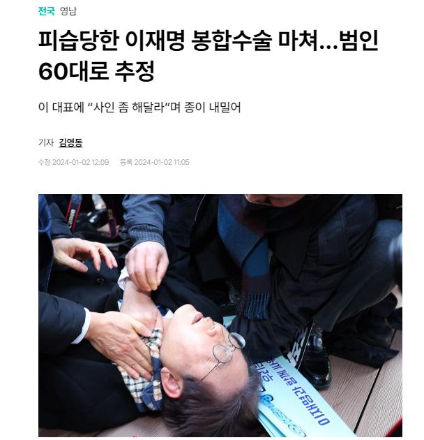 中新網(wǎng)1月2日電 綜合韓媒報道,當(dāng)?shù)貢r間2日,韓國最大在野黨共同民主黨黨首李在明在釜山遇襲后,接受了縫合手術(shù)。