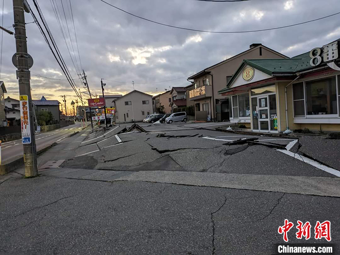 圖為1月1日,石川縣金澤市道路因地震導致龜裂受損。 中新社發(fā) 鐘欣 攝
