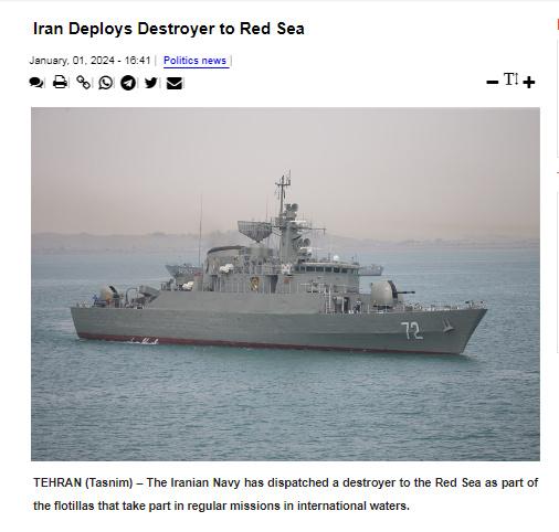 中新網(wǎng)1月2日電 據(jù)伊朗塔斯尼姆通訊社當(dāng)?shù)貢r(shí)間1日?qǐng)?bào)道,在紅海緊張局勢(shì)加劇之際,伊朗的“厄爾布爾士”號(hào)軍艦已經(jīng)穿過曼德海峽,進(jìn)入紅海。