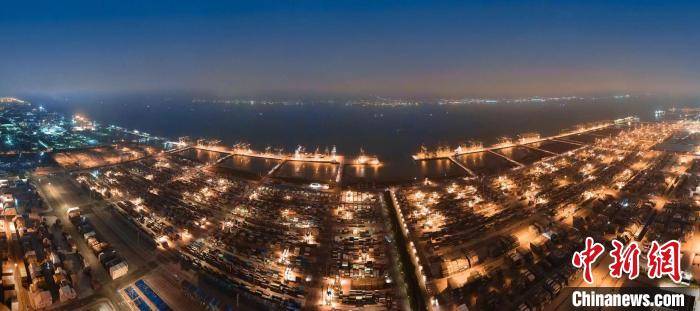 外高橋碼頭燈火通明,作業(yè)繁忙。馬杰 攝