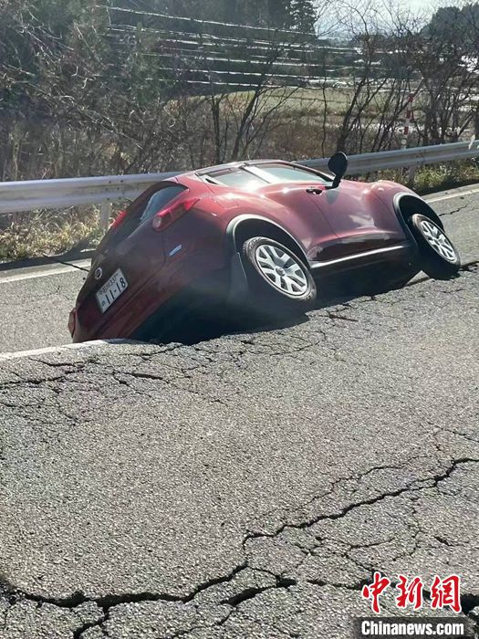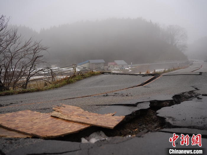 圖為1月3日石川縣輪島市周邊,地震導致道路損壞。 中新社發(fā) 劉勇 攝
