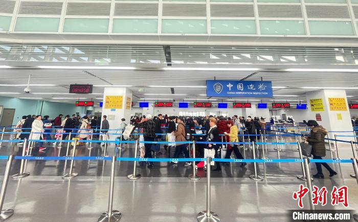 邊檢民警正在使用“入境簡化模式”查驗旅客出入境證件。(盧姣 攝)