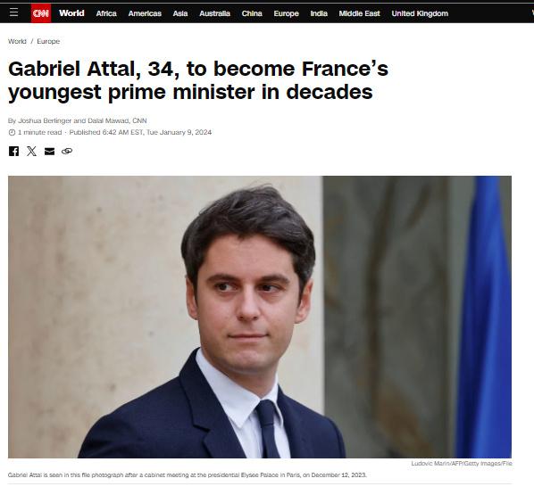 據(jù)報(bào)道,現(xiàn)任法國國民教育和青年部長阿塔爾,將成為自1958年法蘭西第五共和國成立以來該國最年輕的總理。