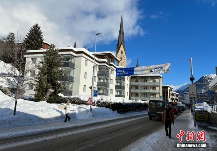 資料圖:當(dāng)?shù)貢r間1月15日,達(dá)沃斯街道上掛起會議相關(guān)景觀裝飾。