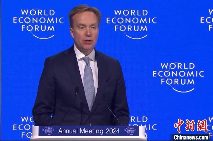 當(dāng)?shù)貢r(shí)間1月19日,世界經(jīng)濟(jì)論壇2024年年會(huì)在瑞士達(dá)沃斯閉幕。圖為世界經(jīng)濟(jì)論壇總裁博爾格·布倫德發(fā)表閉幕致辭。中新社記者 馬秀秀 攝