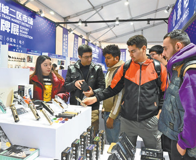 在義烏國際商貿(mào)城,外國客商在二區(qū)垂直展采購小家電。