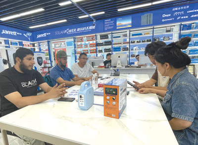 最近,埃馬紐埃爾又開始關注新能源產(chǎn)品?!翱溌∫恍┑胤酱嬖陔娏Χ倘薄⒐╇姴环€(wěn)的問題,很多當?shù)厝讼M夷茉谥袊业胶线m的產(chǎn)品?!睘榇?,他把目標瞄準了義烏國際商貿(mào)城的新能源產(chǎn)品市場,尋找到一些適合喀麥隆的光伏設備?!爸袊男履茉串a(chǎn)品性能可靠、性價比高,產(chǎn)品品類覆蓋領域廣泛?!卑qR紐埃爾表示,大到醫(yī)療機構,小到禽畜養(yǎng)殖場,中國光伏設備供應的電力有助于滿足當?shù)孛癖娚a(chǎn)生活的用電需求。