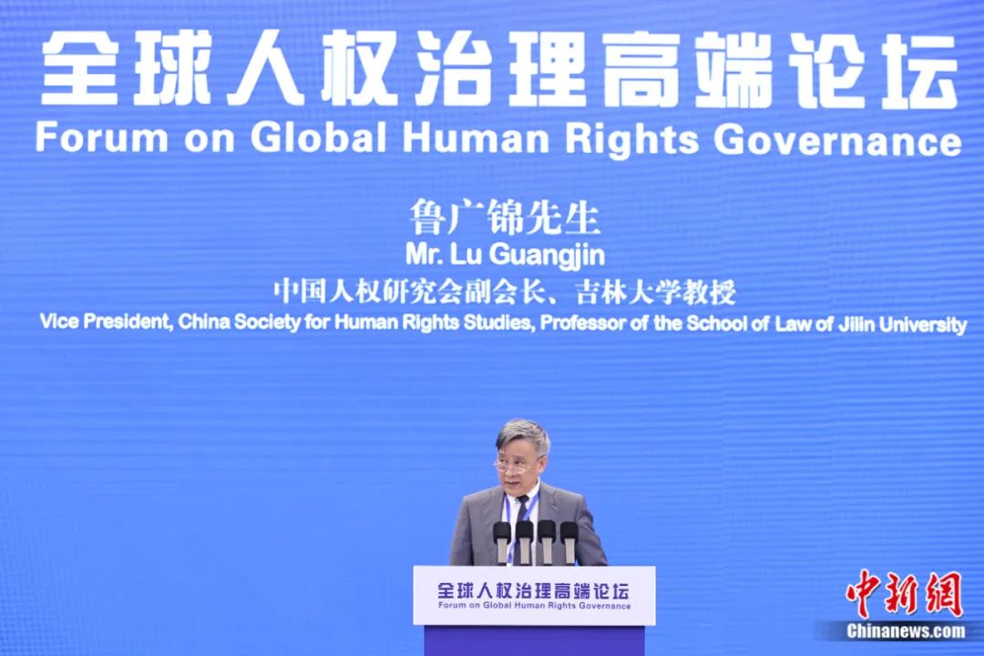 2023年6月15日,全球人權治理高端論壇在北京舉行。中國人權研究會副會長、吉林大學教授魯廣錦進行大會發(fā)言。蔣啟明 攝